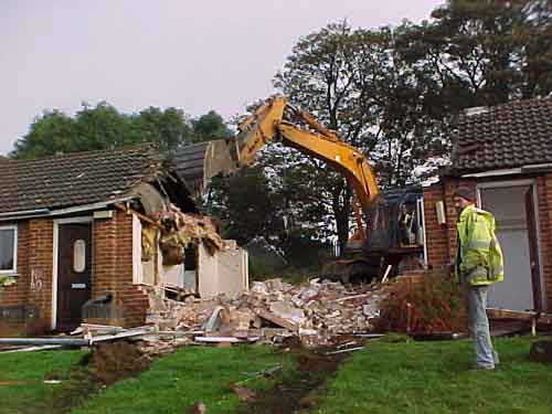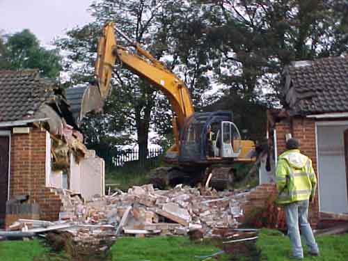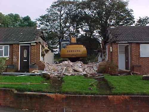 One of the many current projects underway in Camp Hill is the re-generation of the village centre and surrounding housing. We have got hold of some picture showing one of the bungalows being recently demolished which you can see by clicking on the images below to re-size them in a new window.